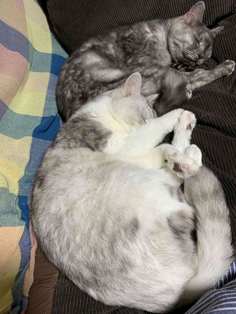 ぶぶちゃん、しるちゃん微妙に重なって気持ちよさそう。ホッコリします。