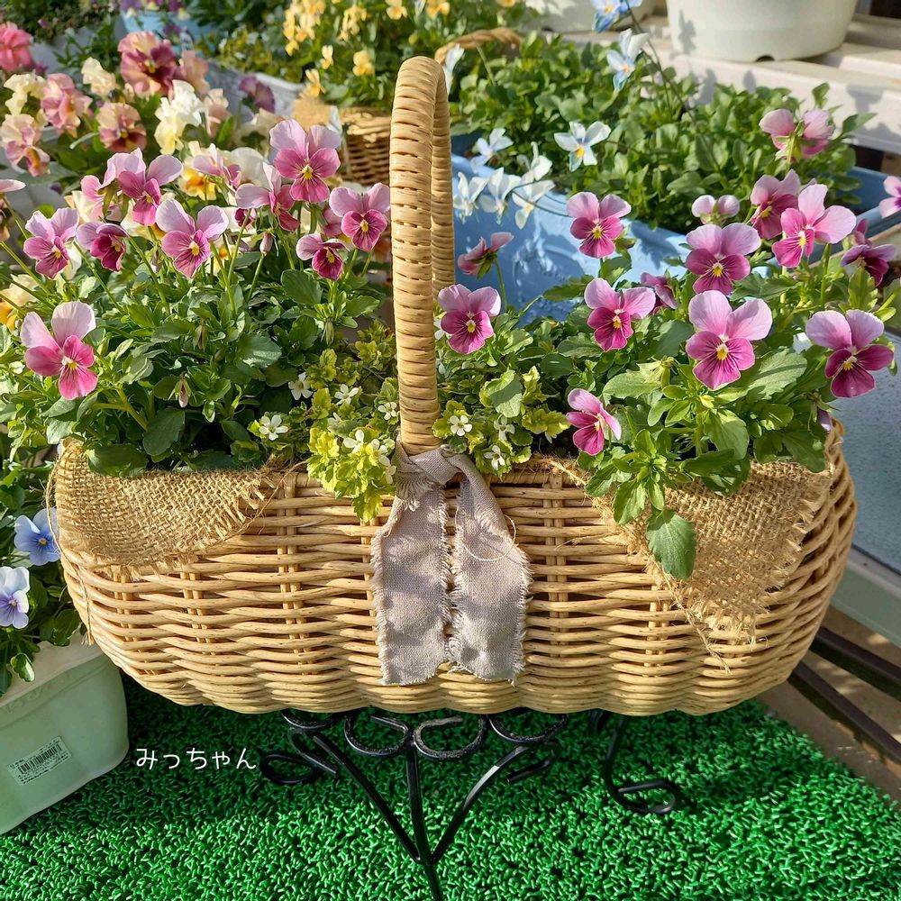 まだ植えて数日ですが、カゴとお似合いな