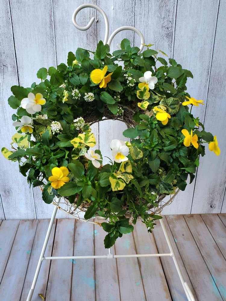 リースは緑が多めでところどころお花があるのもこんなに素敵なんだと知りました