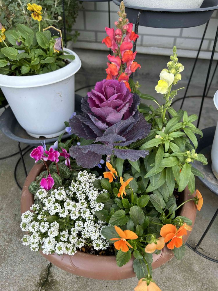 出来合いの鉢がお安く売られてたので……今回、寄せ植えはサボって出来合いをお迎えしました😅😅
