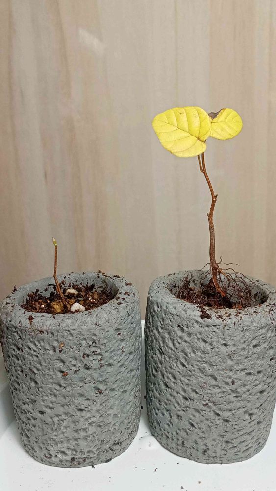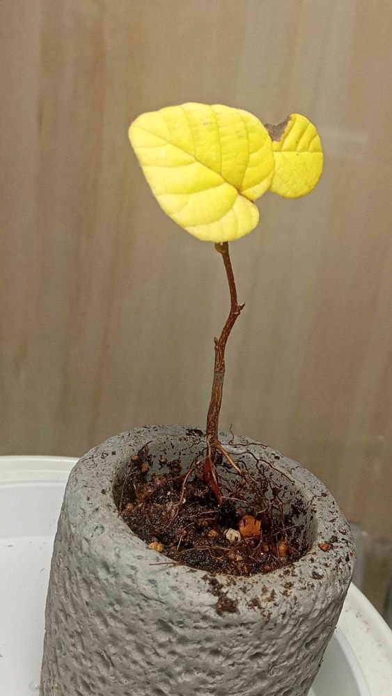 実生一年生少し有った葉っぱも落ちて今はこれだけ 黄色く色づいてかわいいです🤗