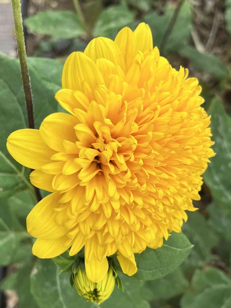 ヒメヒマワリ八重咲き🌻も、花びらもビッシリとつまって、パワーモリモリですネ💛