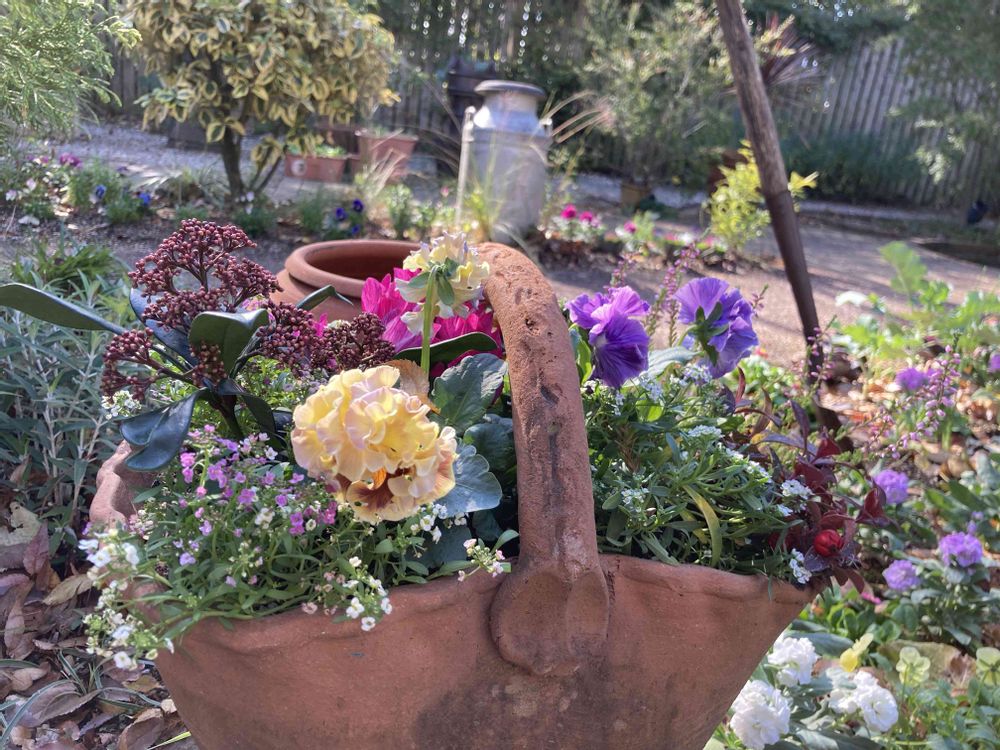 素焼きバスケット🧺の寄せ植え🌼.*