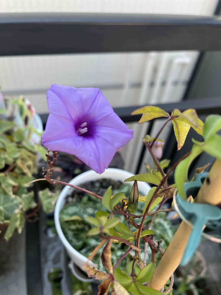 先日迷っていた琉球朝顔がめいいっぱい咲いてました💜