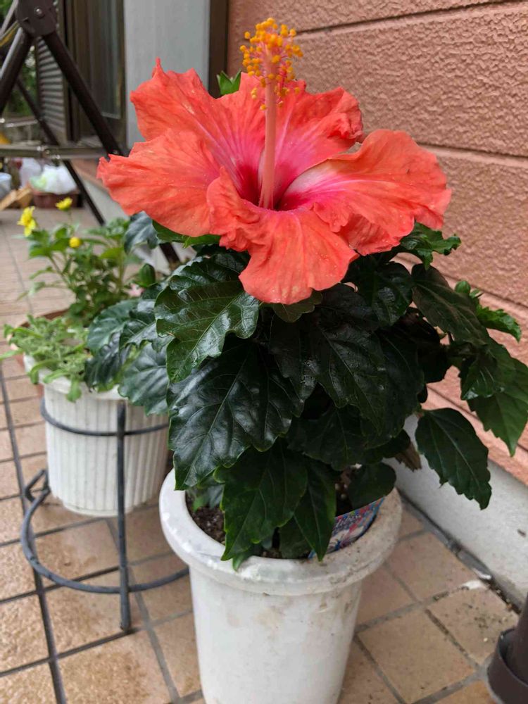 ところでハイビスカスの花は赤色以外にもイロイロありGSでも鑑賞しています。これはオレンジ色なのかな⁈