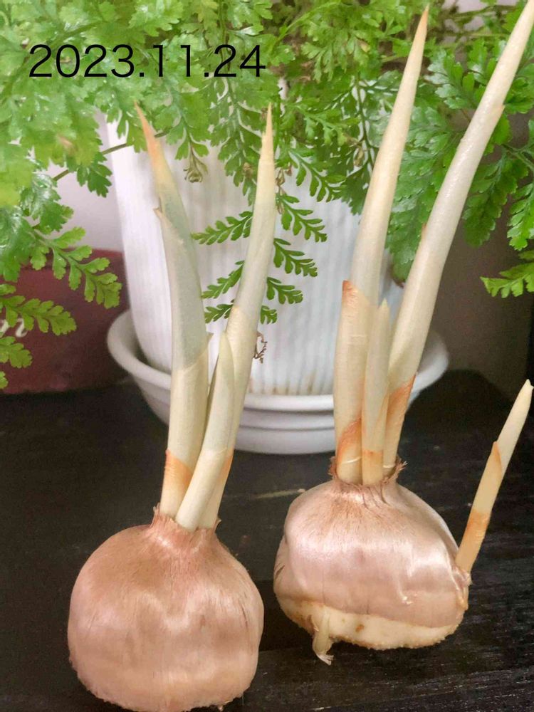 7月に園芸店の店長さんに、そのまま置いておくだけで育ちますよ!と勧められ艶々の球根が可愛くて2個お迎え♪