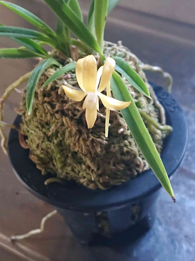 先日の季節外れの風蘭。終わりに近づいて、黄色と匂いがはっきりしてきました。