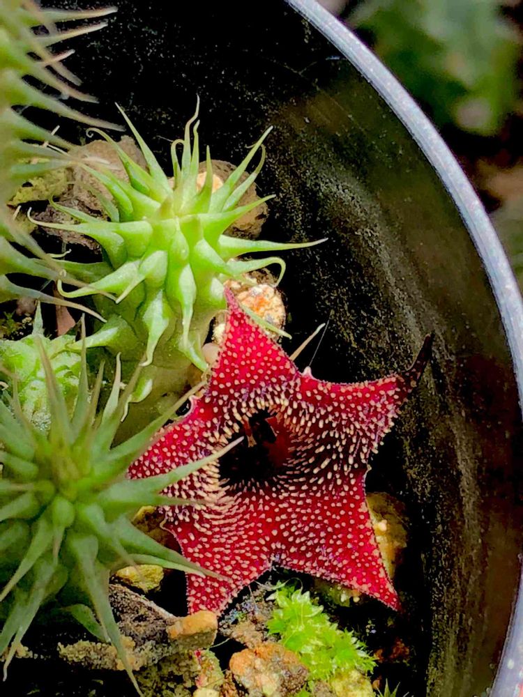 ヒトデみたい。虫とか食べちゃいそうな・・凄い存在感のお花ですね!! 興味津々!!