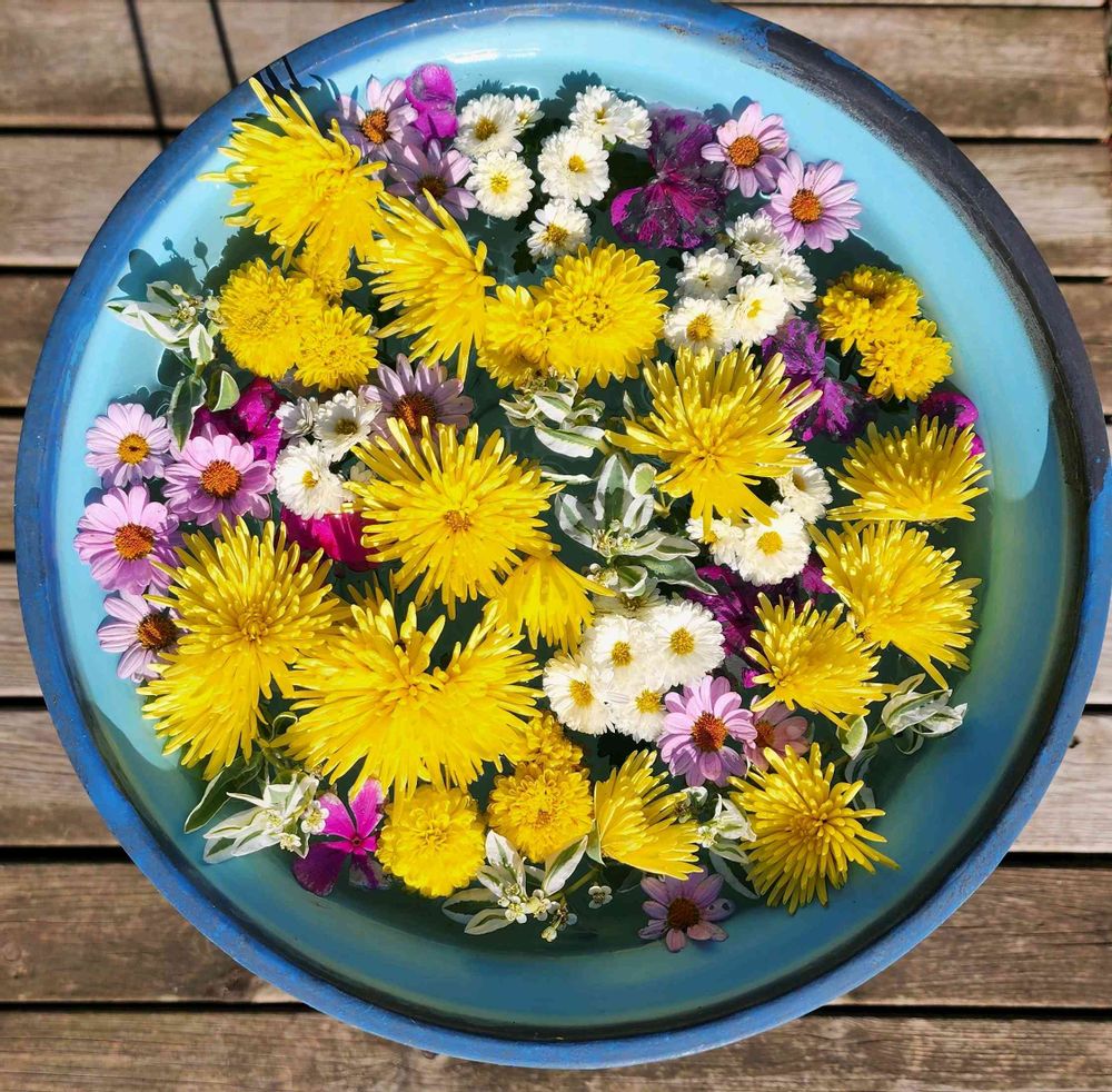 いつも綺麗にお花を育てているお家に久しぶりに訪れたら、花手水が飾ってありました。