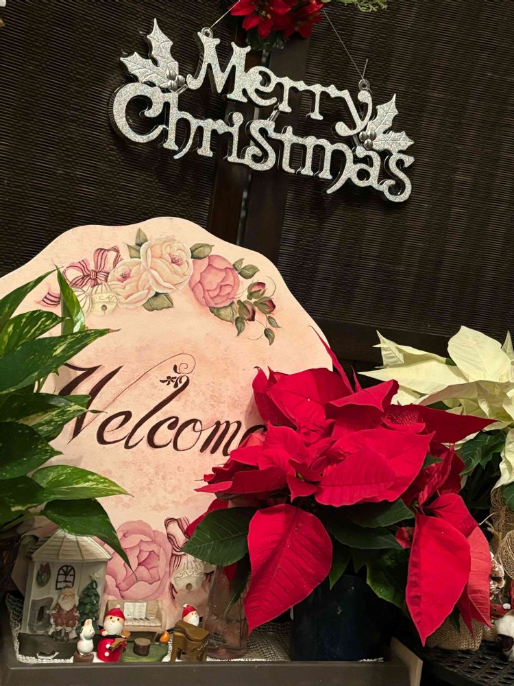 花友さんからのプレゼント🎁のトールペイントを入れて、玄関をクリスマスバージョンにしました。