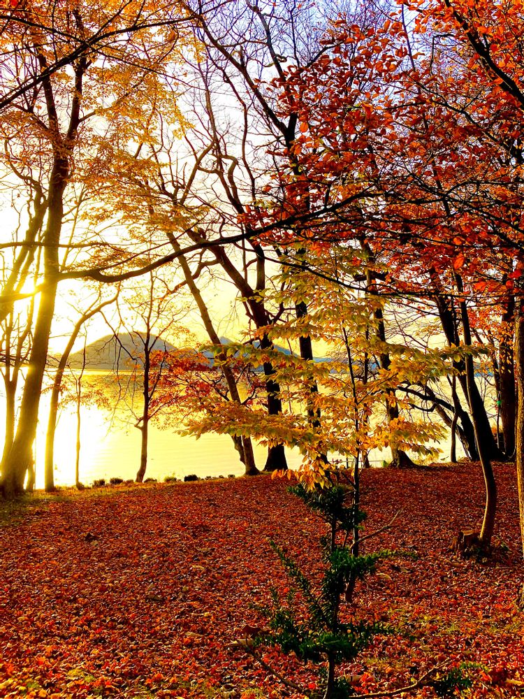 湖畔に映える夕日のか美しく、紅葉🍁もホントにきれい🥰