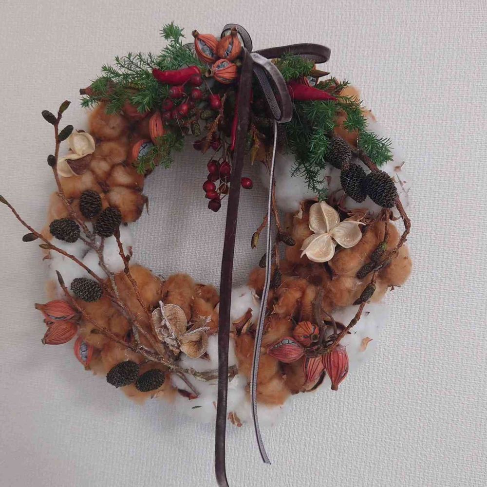 昨日 クリスマス🎄のコットンリースを作ってきました