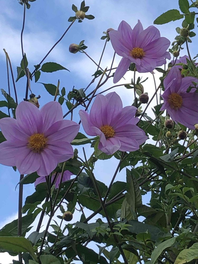 道路沿いの花壇にて、一重の「皇帝ダリア」をパチリ!📸🌸🌿😊😄🌞✌️