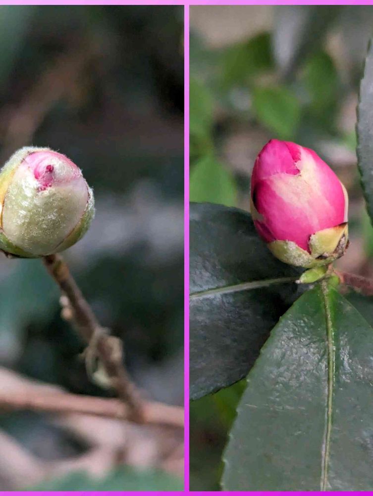 ②わが家のピンク色のサザンカのお花はまだ蕾です🤚