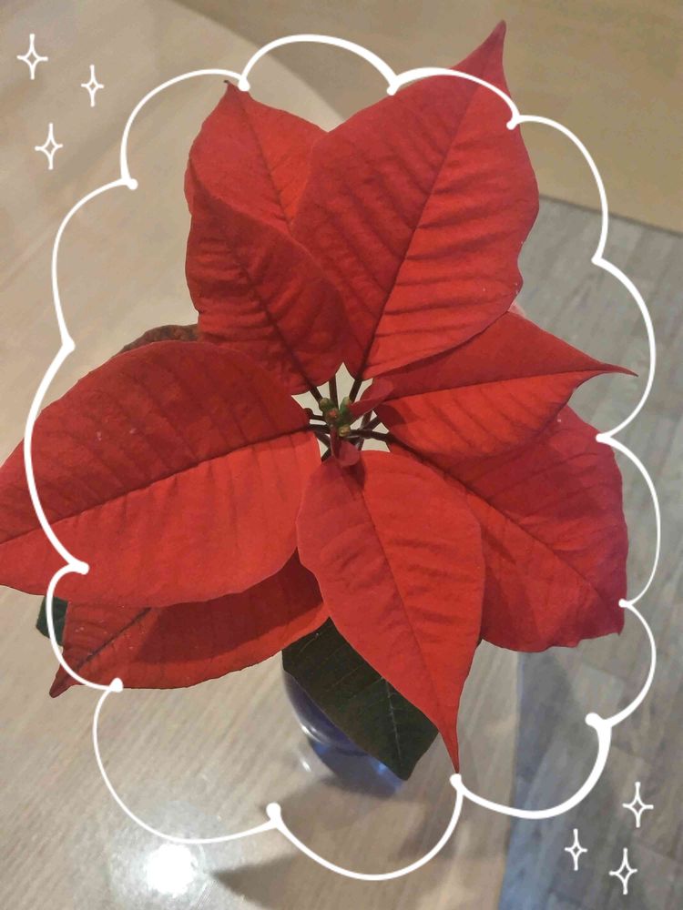 風が強くて折れてしまったポインセチア♥️🌿 花瓶に飾りました😊💕