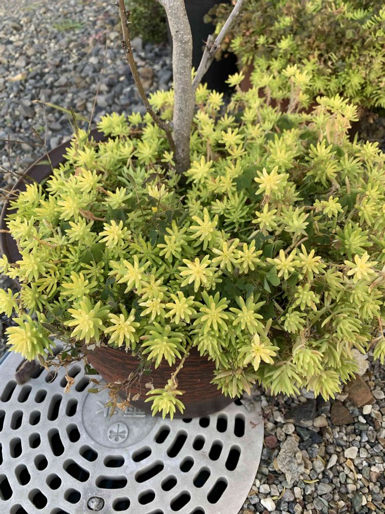 セダムとカタバミが山椒の鉢で混植のように😆😆