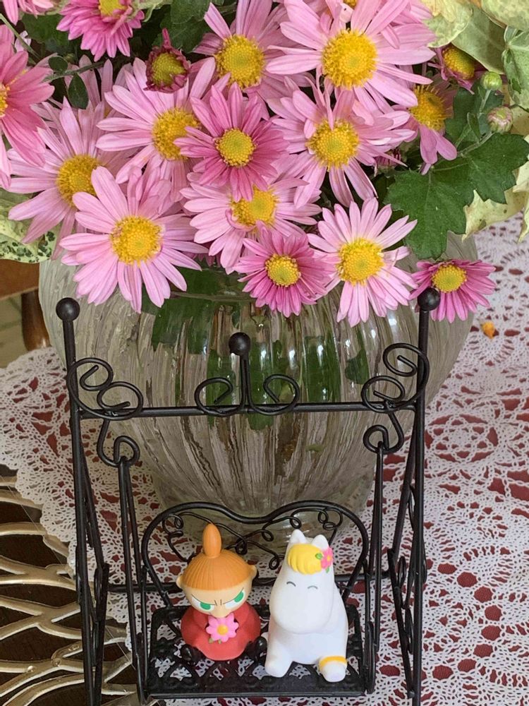 庭に勝手気ままに咲いていた小菊さん、摘んできて眺めてますが、今日はミィ達が遊びにき来ています💕
