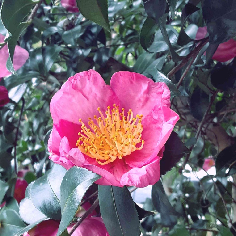 実家の玄関脇に咲くサザンカꕤ…˖*
