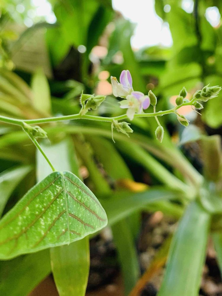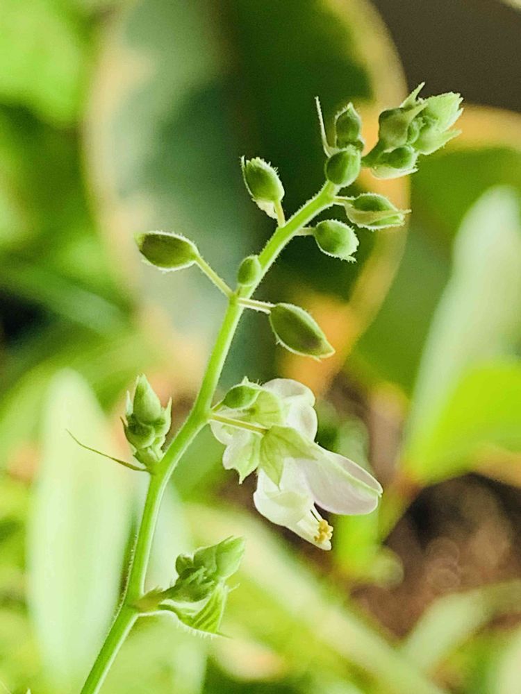 芽でたく飛行機草の花芽が、出て、今日、咲きました🙌