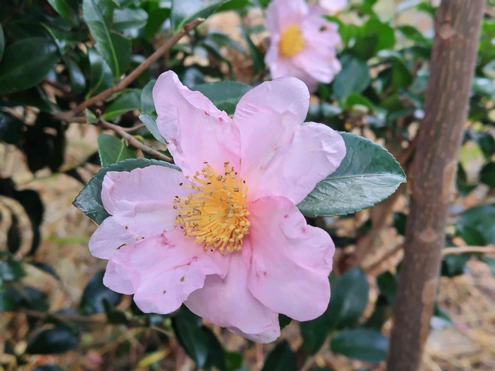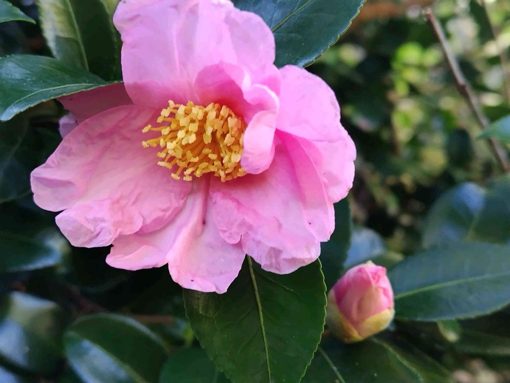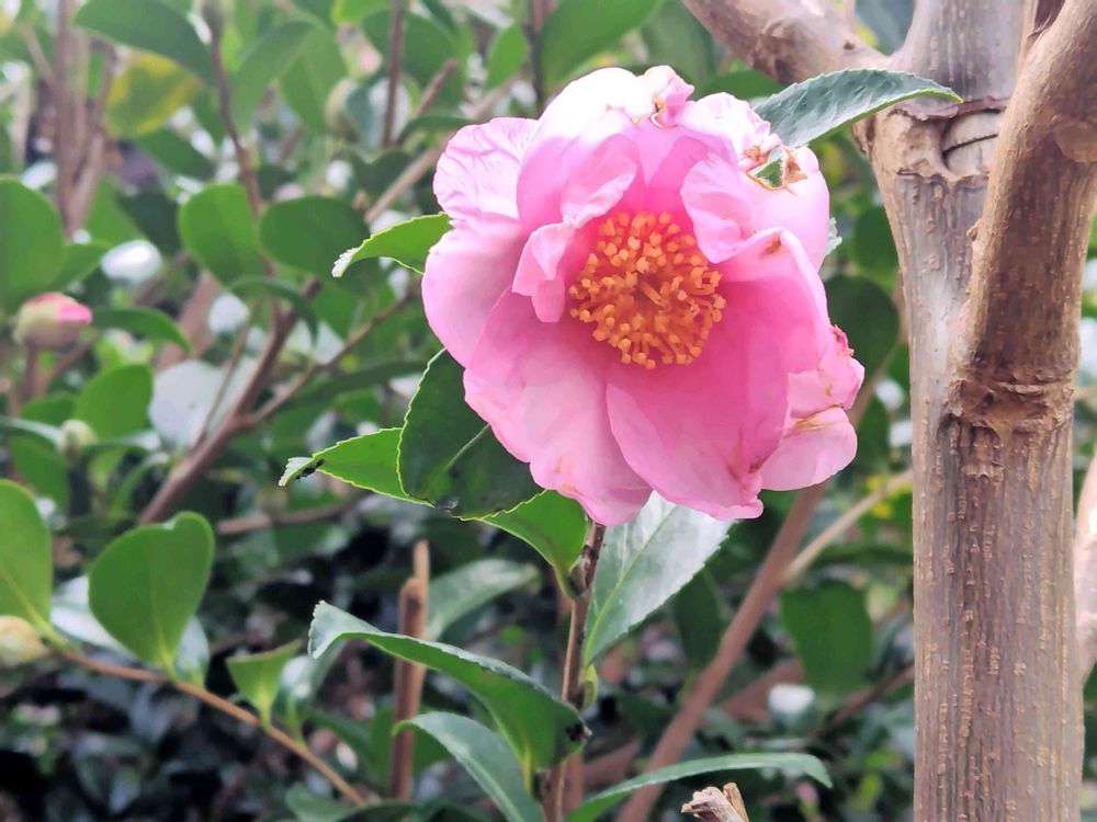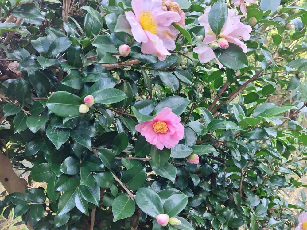 北の庭には、今日のお花のサザンカが咲いてます🌼