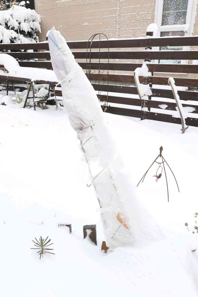 風が強くて雪囲い斜めって🤣💦💦