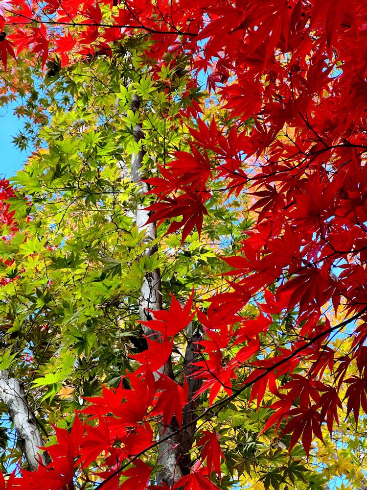 まだまだ緑色の木もあり、これからもっと真っ赤になるのでしょうね。