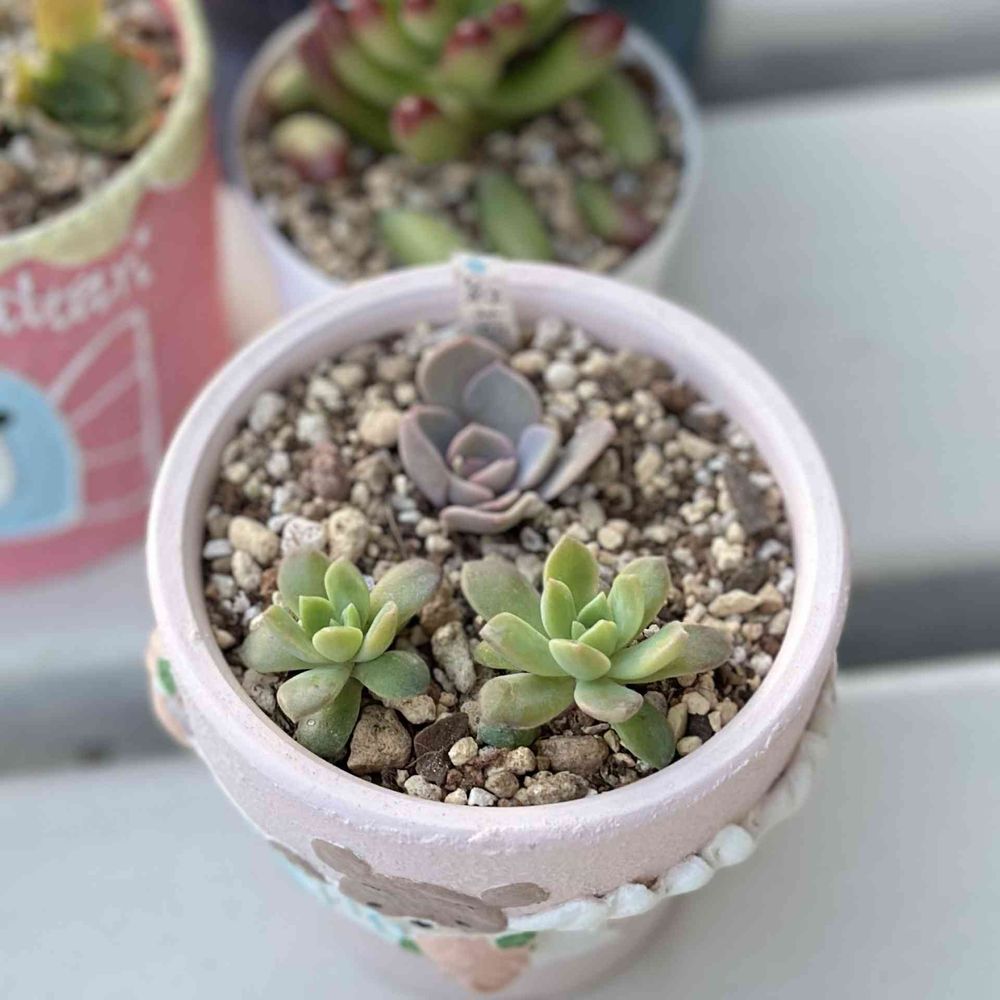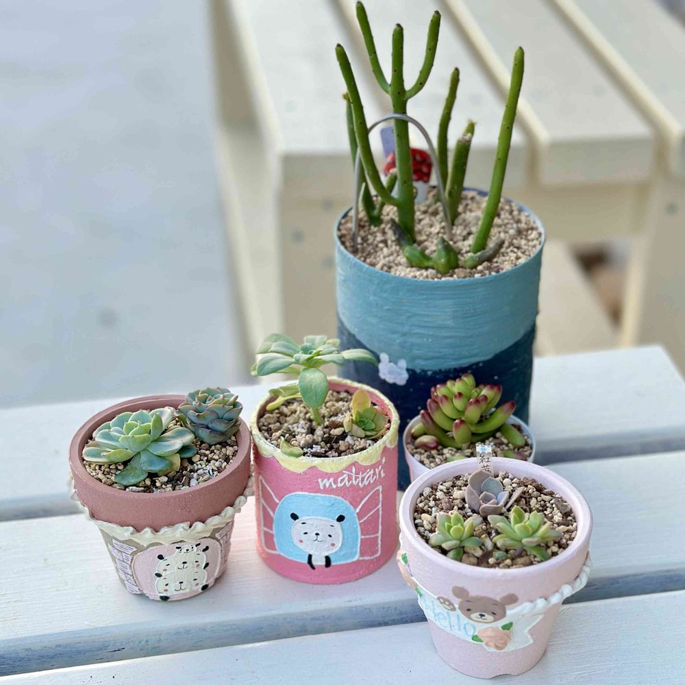 1番大きな鉢にお家が入っているでしょ?あれもほっこりさんの作品?!いいなぁーー😋多肉ちゃんも可愛いけど、鉢にも目がいっちゃうーー♥♥パステルピンクはやっぱり優しいカンジがしていいねぇーーー♥