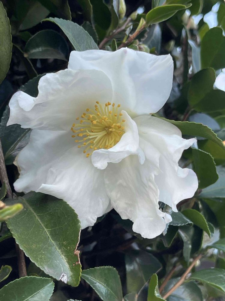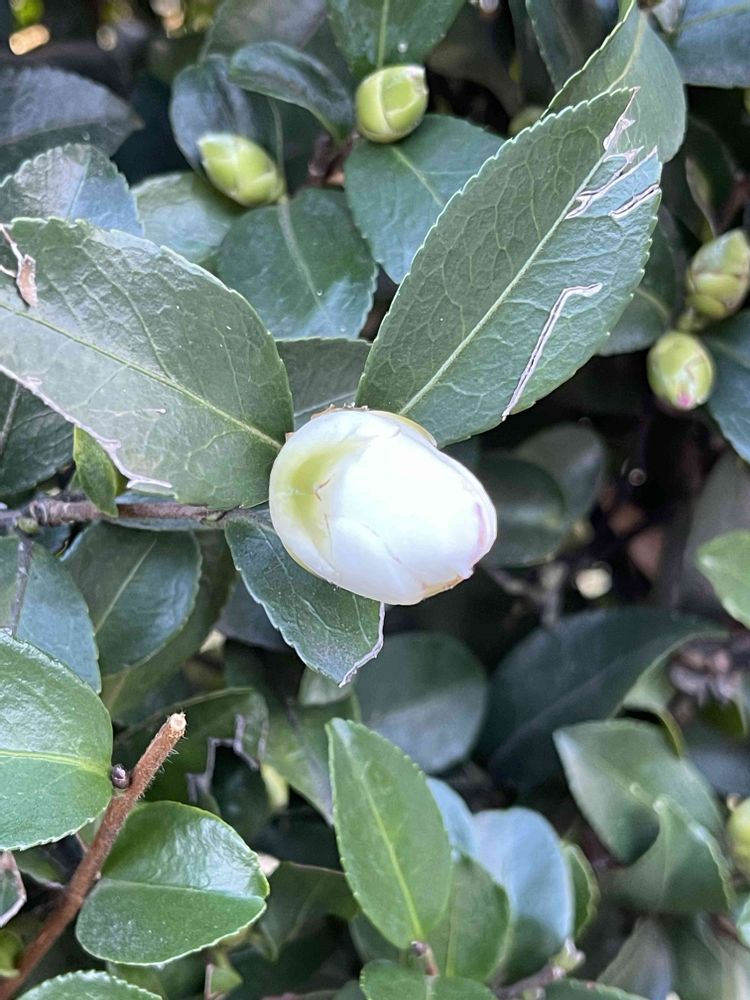 先日も投稿してましたが今日の花が山茶花という事で、お昼休みにまた職場の植栽で撮った写真です♪