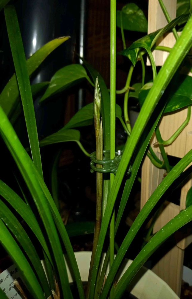 寒蘭の仲間かな。薄い緑のシュッとしたお花です。去年池袋の最終日の値引きの魅力に負けて買いました😃