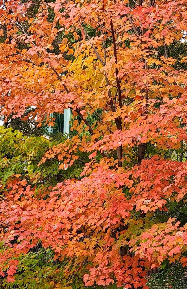 アメリカハナノキが良い感じの色で目を楽しませてもらってます。
