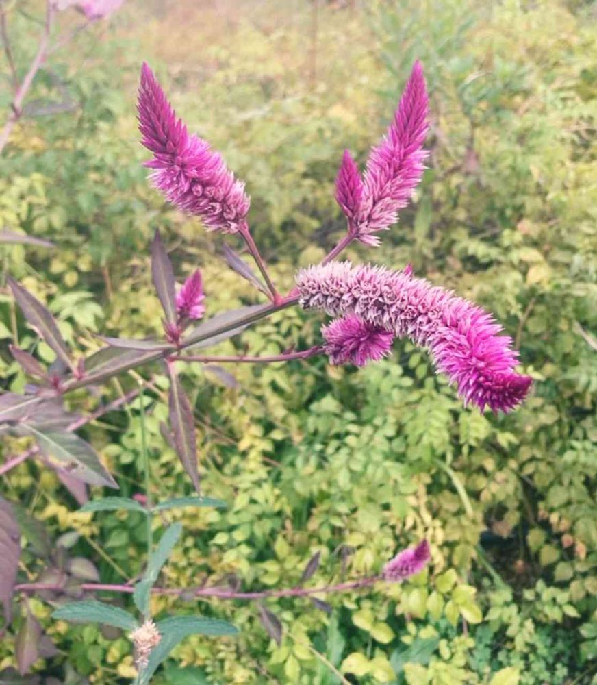 ピンクの野鶏頭(ノゲイトウ)・「セロシア」が、朝の遊歩道に咲いていました❣️