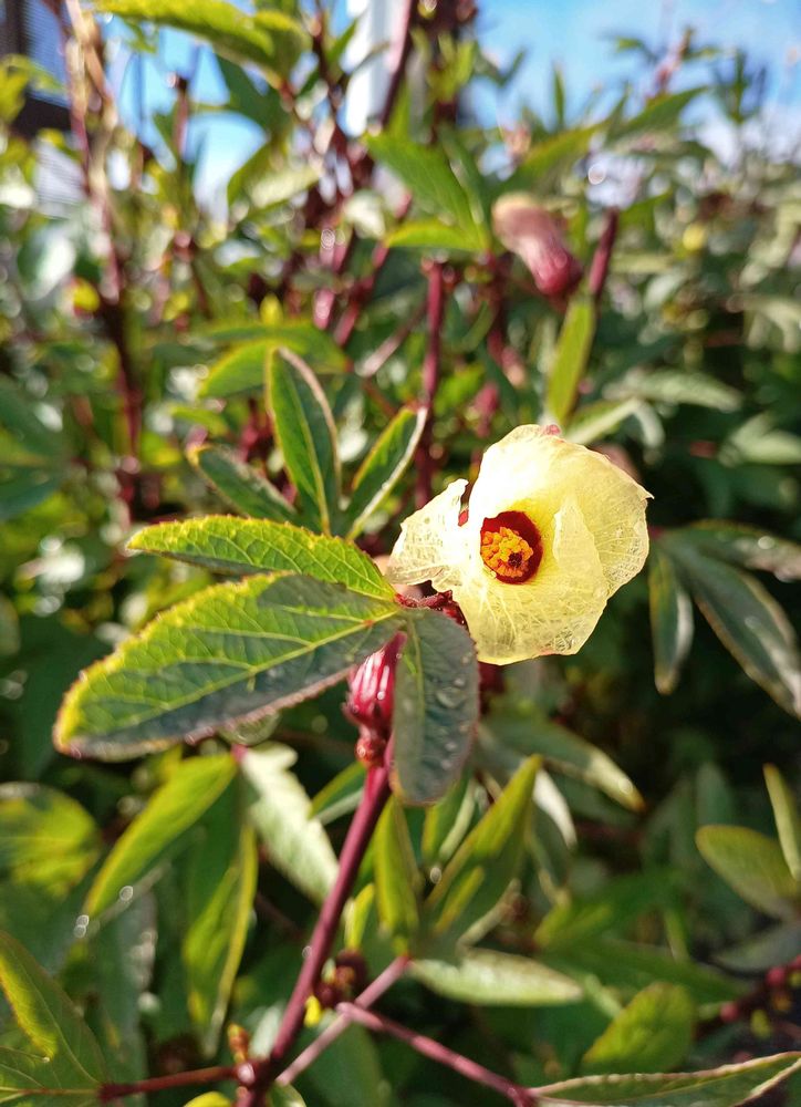 ローゼルを育てたいと思っていたのですが、種まきも難しく、背丈も大きくなると知り、諦めていましたが、真っ赤な実がいっぱい成っているのを見つけ、ジャムも作りました。