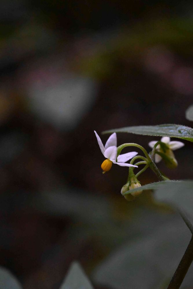 イヌホオズキ より茎や葉が細く、イヌホオズキの花は白だが、こちらは薄紫。しかしまれに白に近いものもある。