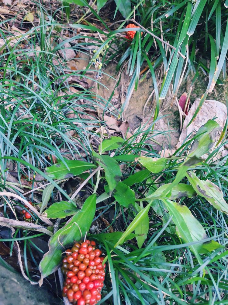 マムシグサかムサシアブミ、テンナンショウ属の実だと思いますのでグーグルレンズで見て下さいね🤗