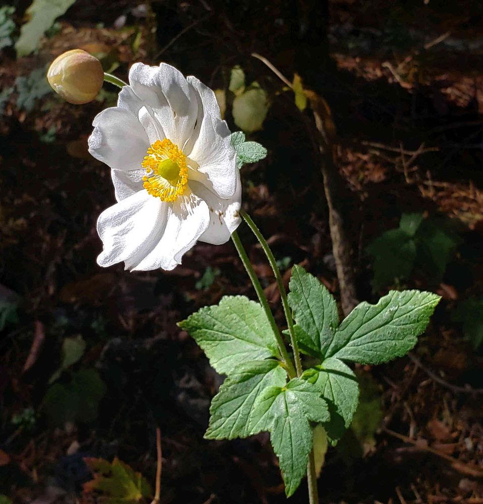 木陰に30cmも無いくらいの丈のシュウメイギクがまるで陽を集めるようにして咲いている。