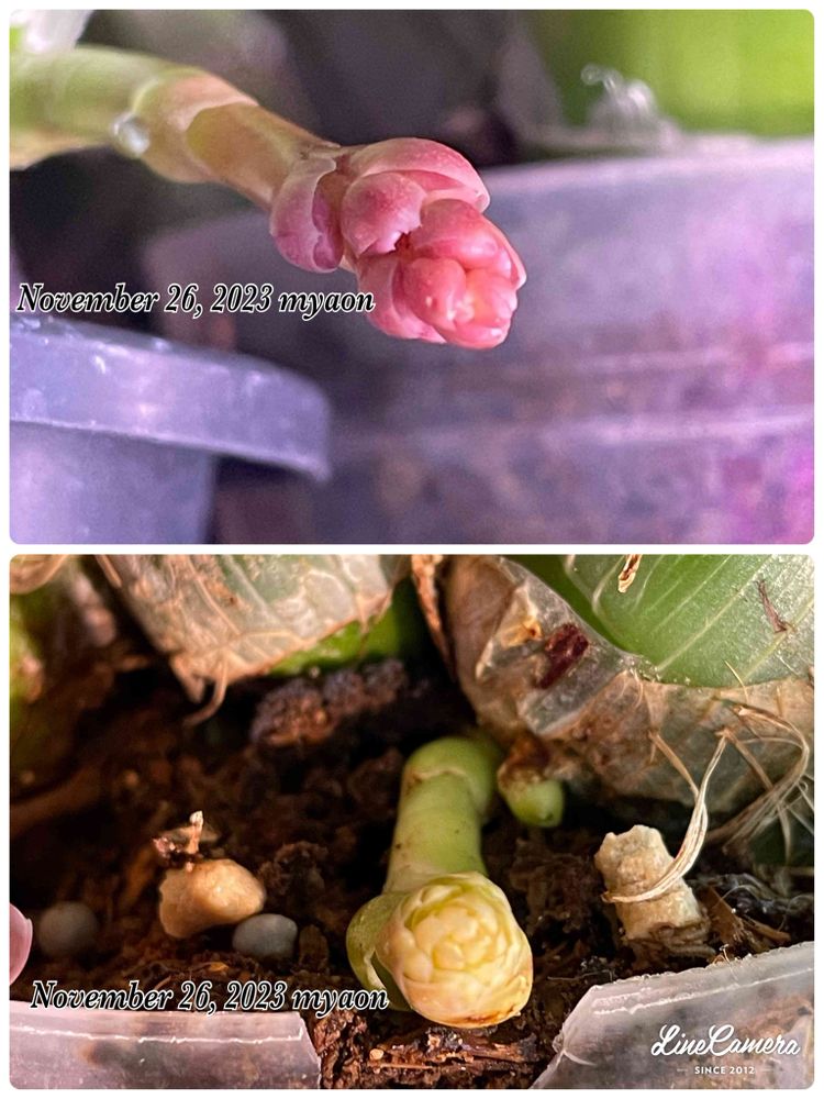 上段 : サンシャインシティの蘭展で購入したタケノコ蘭。(っ `-´ c)マッ!!マサカ……花芽を付けてくれるとは思わなかった〜嬉しい♥️