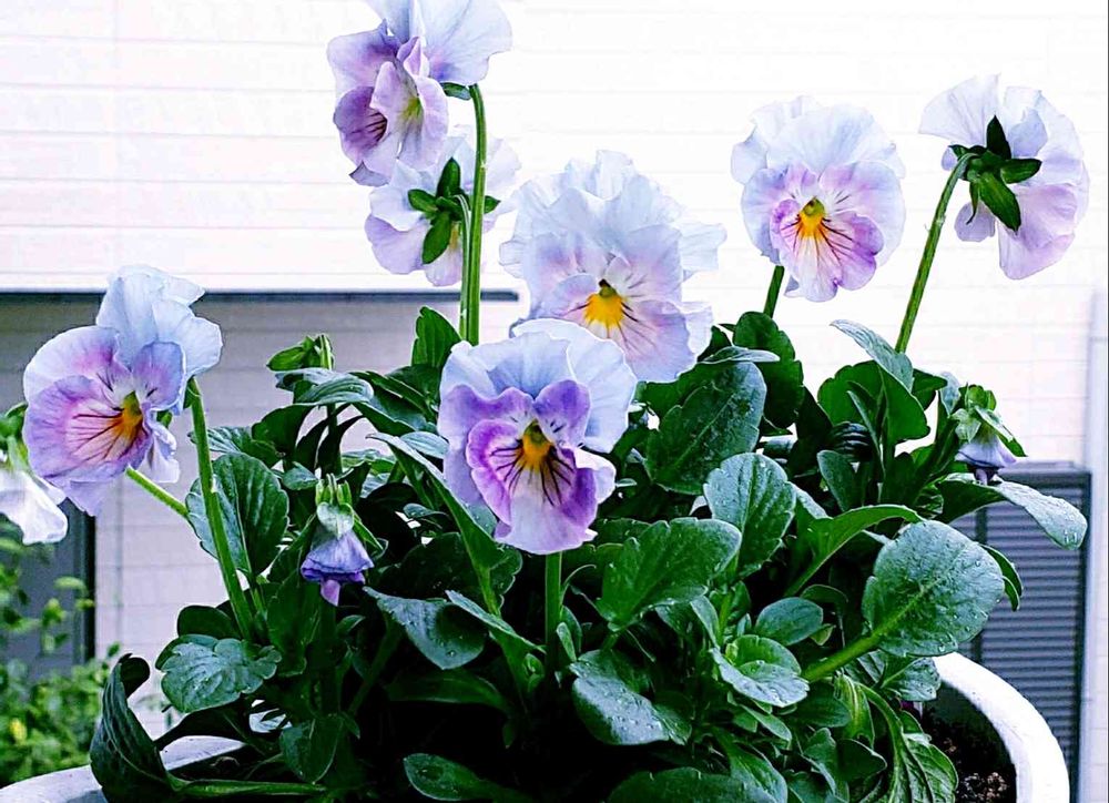 黒いビオラ・ブラックパールは何だかパープルパールと言いたくなる色で咲き、淡い水色のビオラ・ヘブンリーブルーは若干くすんでヘブンリー灰みたいになる。ご遺灰みたいなネーミングで本当に礼を欠いてしまうがブルーというより灰色に見えるのだ。