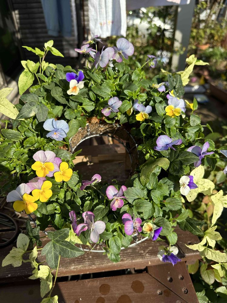 昨日お迎えしたビオラ達、ハンギングリースにしてみました♬