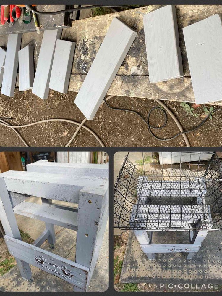 2枚目 材料:多分、昔の掘り炬燵の炭の上に被せたであろう網と木製パレットと端材