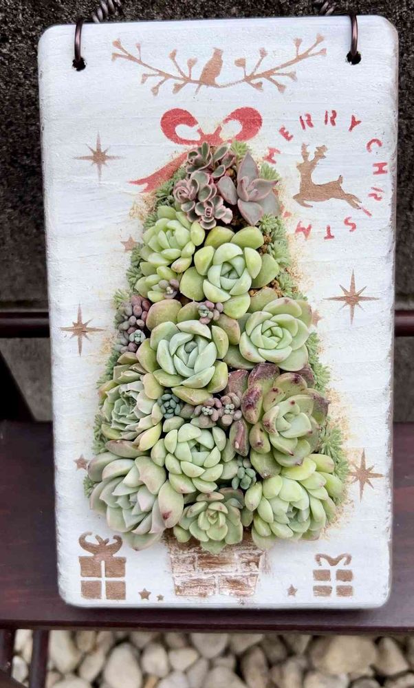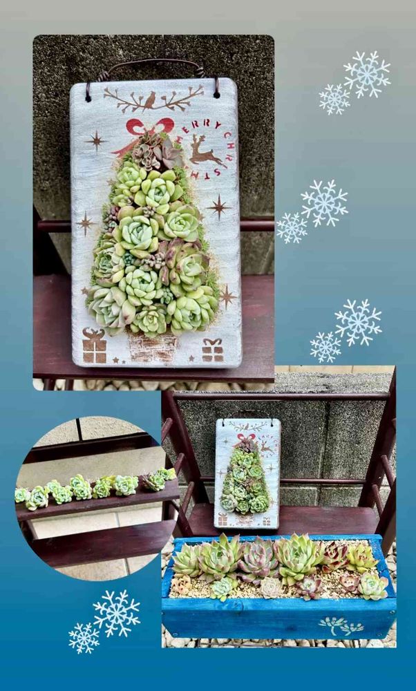 昨日やっとまるっとマルシェで購入したayaさんのクリスマスツリーのタブローに寄植え?しました❗️