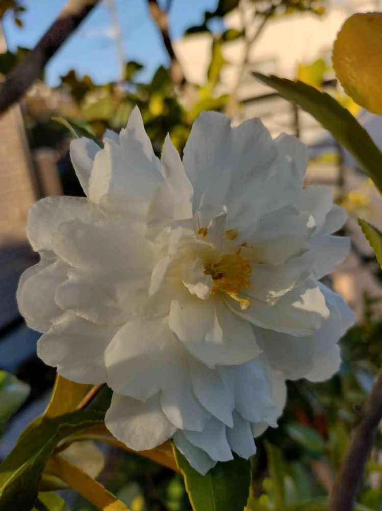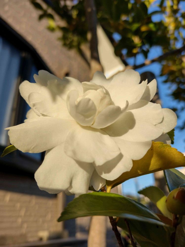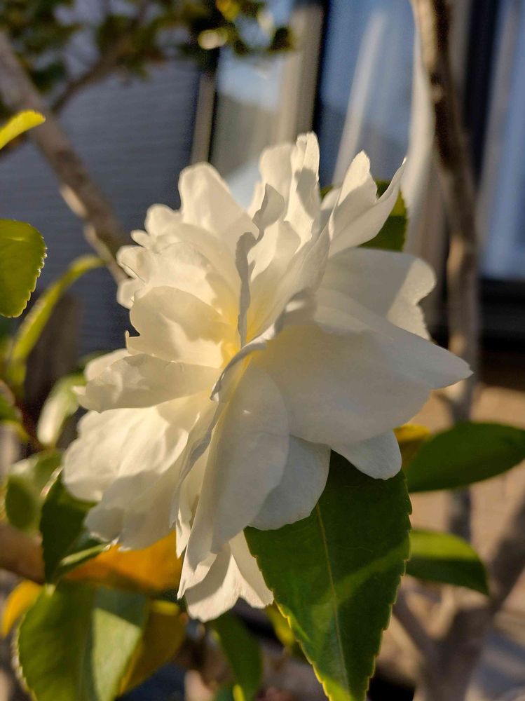 我が家の竹垣の山茶花が、一株だけ咲いてました😆何本も同じ八重の山茶花なのに、咲いているのは一株だけ😗不思議ですねぇ☺️