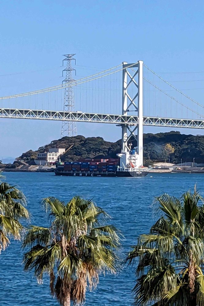 ヤシの木から望む関門海峡は、南国の雰囲気