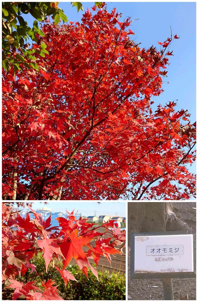 青空を背景にオオモミジが真っ赤に燃えておりました🍁🔥(農業試験場内にて)