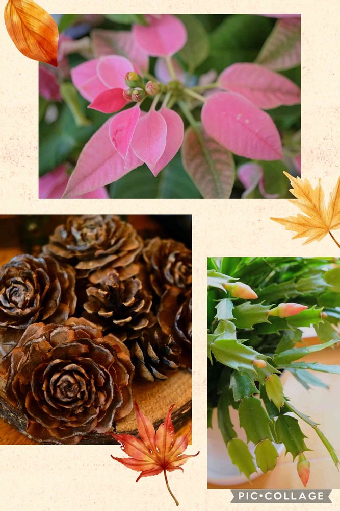 🩷💚プリンセチアと昨年買ったシャコバサボテンの蕾が膨らんできました😊