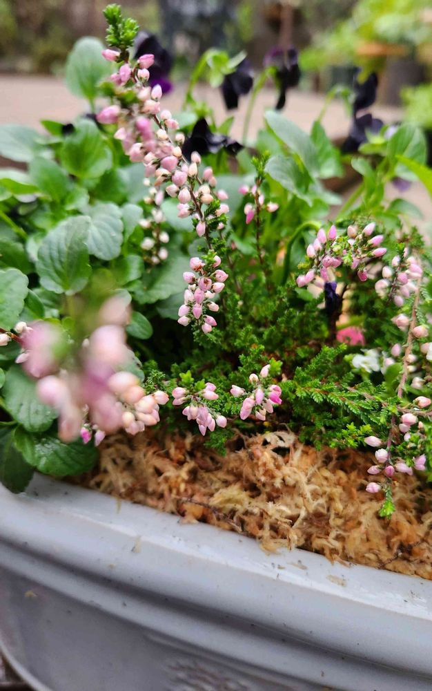 ビオラ藍月さんで寄せ植えを作り、良い感じに成ってきたなーと思っていたら、突然、片方の子がグリャリ、カルーナさんに間に入ってもらいました。