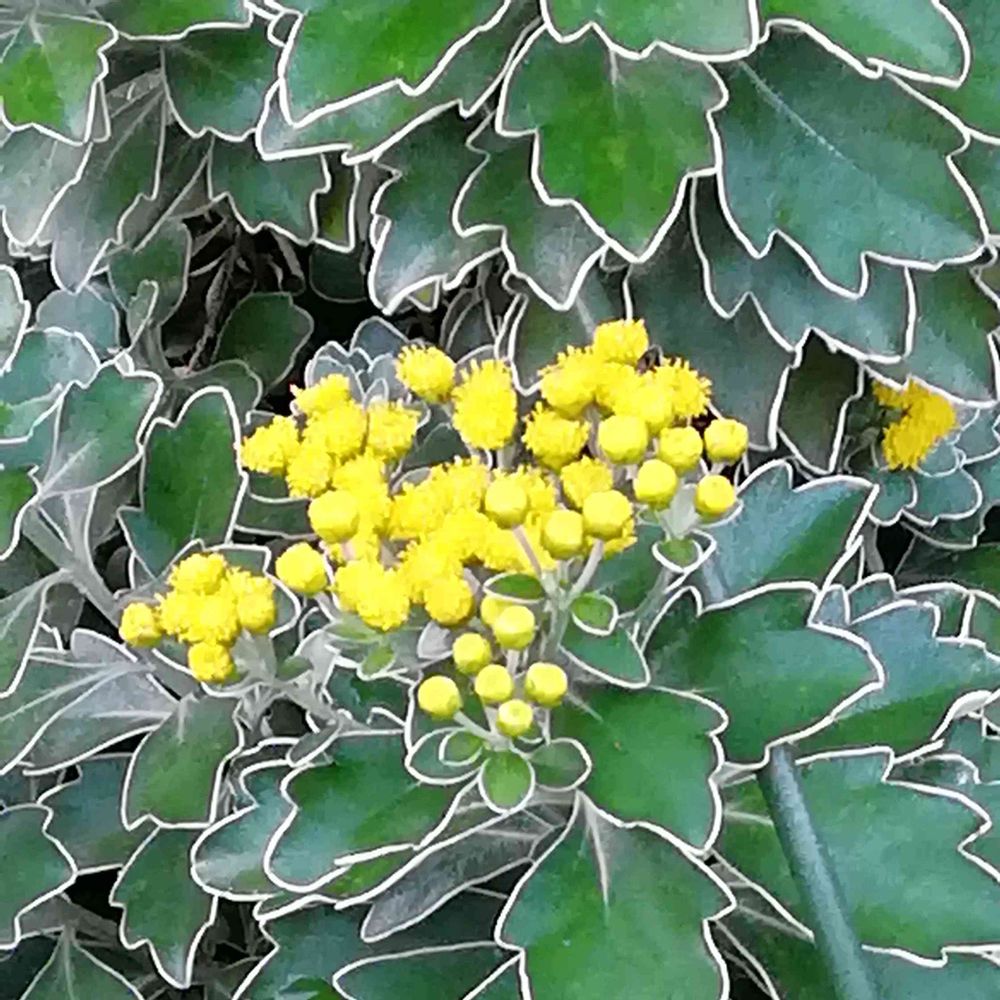イソギクの💛花と白い縁取りの葉がおしゃれで素敵ですね💕