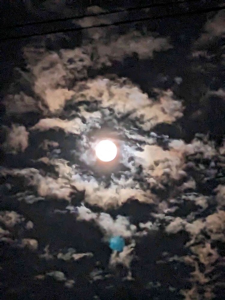 皆様の綺麗な満月🌕の投稿に刺激され、私も試みたんですが…私のスマホでは、なかなか上手く撮れませんでした😅