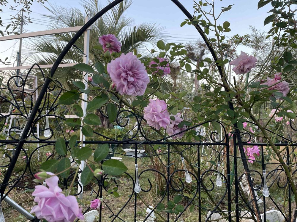 我が家も小さなオベリスクに誘引してありますが、私がいつも座る場所から今の季節だとよく見えるんですよ😊