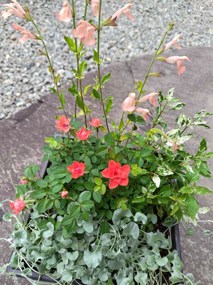ディコンドラ シルバーフォール,サルビアチェリーセージ,寄せ植えの投稿画像