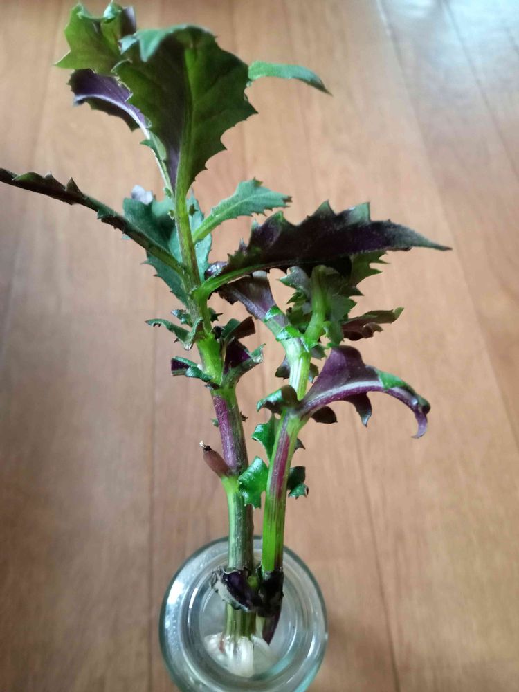 紫の🟣アントシアニン、茹でると薄くなって普通の葉っぱ🌱みたいですね🤔😅